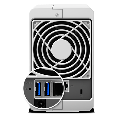 DS216j 配備 USB 3.0 埠,讓你能夠連接不同的外接儲(chǔ)存裝置,同時(shí)擁有快速、高效的文件傳輸效率。透過(guò)支持 USB 3.0 接口,其提供較前一代快 10 倍的傳輸速度,不僅使外接硬盤(pán)的數(shù)據(jù)傳輸更為順暢,也可降低耗電量。