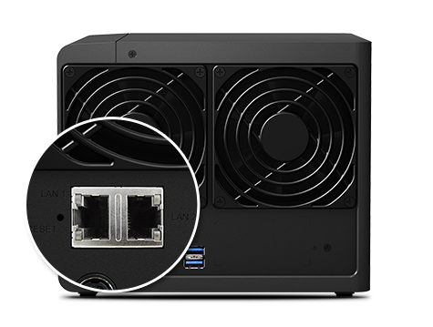 DS416 內建支持故障移轉及 Link Aggregation 的雙網絡埠,在其中一個網絡埠故障的狀況下,仍可確保聯(lián)機繼續(xù),降低服務中斷的可能性以及因停機所造成的昂貴成本。此外,Link Aggregation 充分發(fā)揮雙網絡埠的優(yōu)點,可提升連接速度,突破單一網絡線或網絡埠的速限。