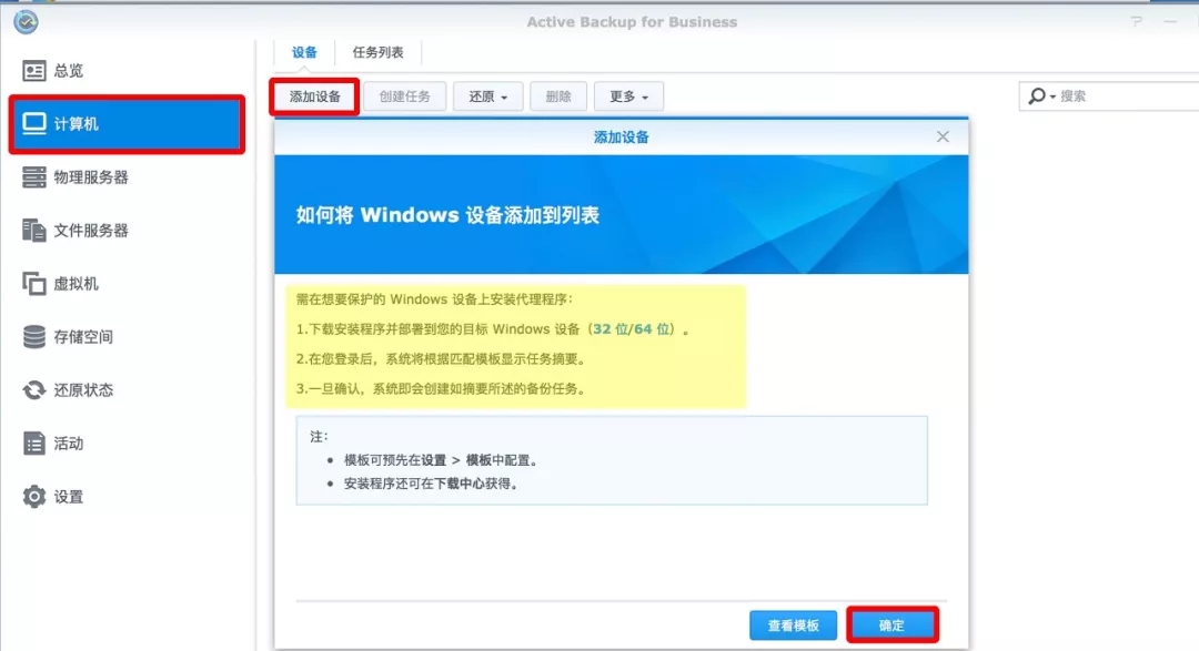 如果需要對Windows Server整機系統(tǒng)提供保護,你可以在服務(wù)器上部署代理程序,如有多臺服務(wù)器也可以批量部署。如果服務(wù)器遇到災難無法正常運行的時候,可以選擇通過Synology Virtual Machine Manager (VMM)直接在群暉NAS上恢復作為臨時的容災方案,減少業(yè)務(wù)中斷時間,降低企業(yè)損失。